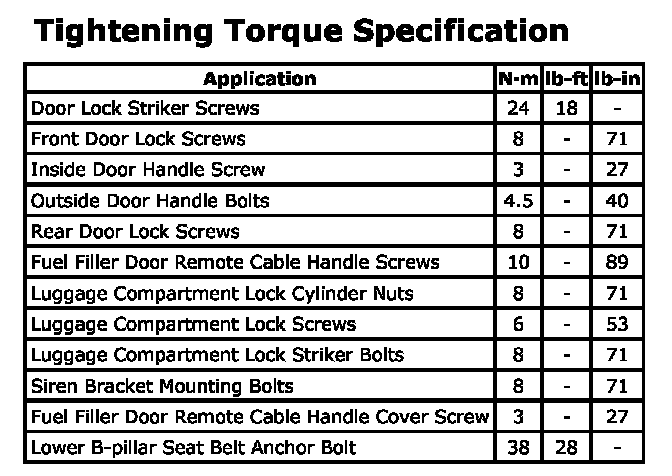 Tightening Torque Specification: