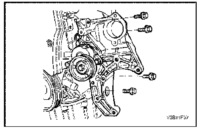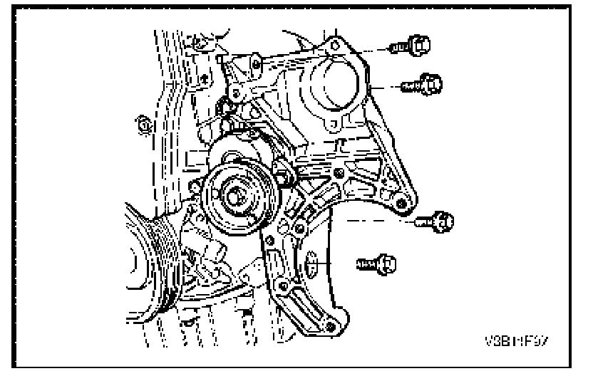 2. Remove the power steering pump, if equipped. Refer to Pump Assembly Removal and Installation.