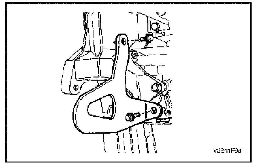 4. Remove the rear A/C compressor mounting bracket bolts and the rear A/C compressor mounting bracket.