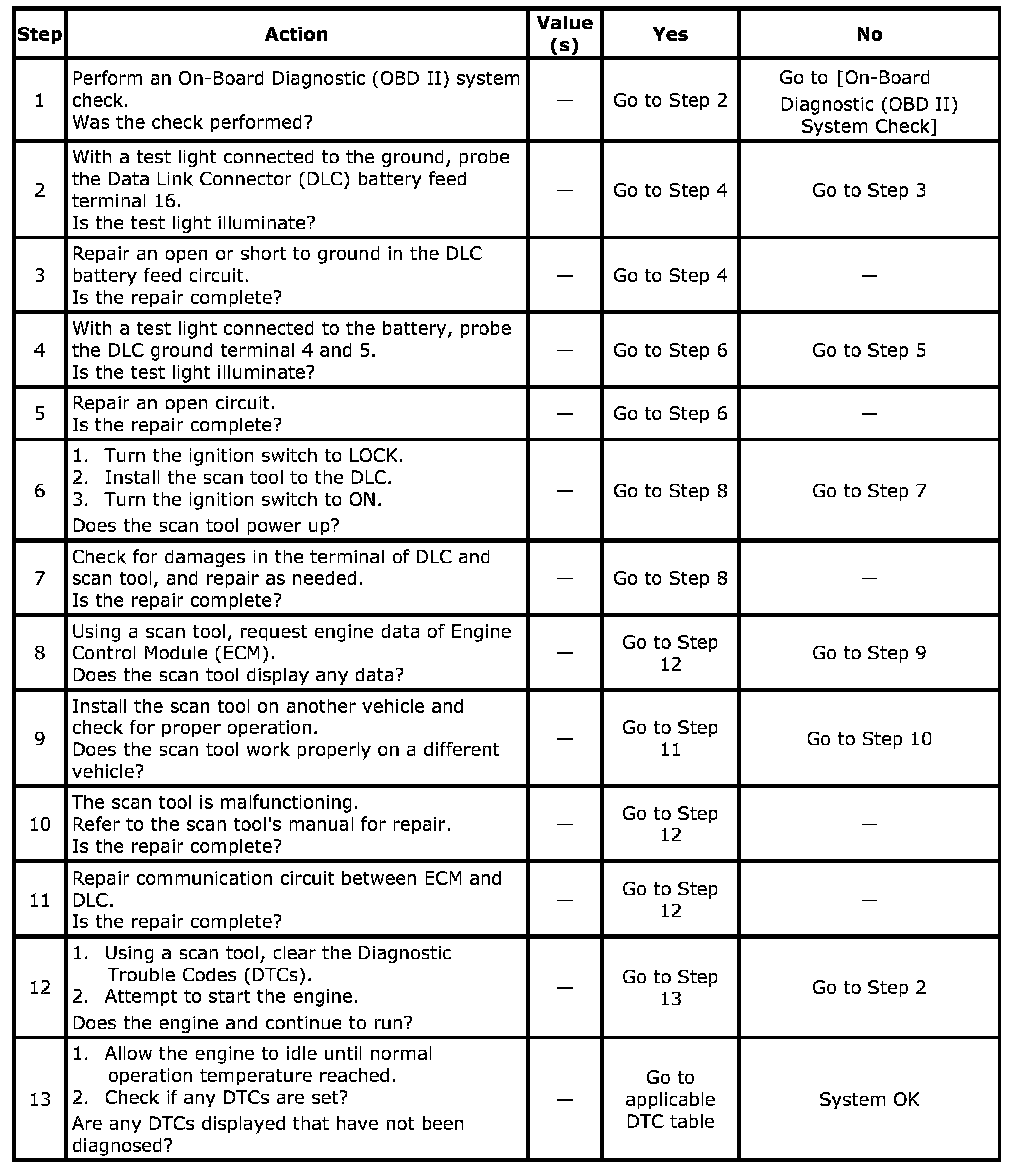 Data Link Connector DiagnosisData Link Connector Diagnosis:
