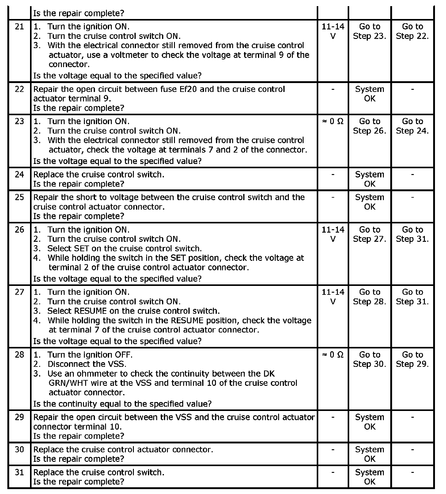 Cruise Control System Diagnosis: