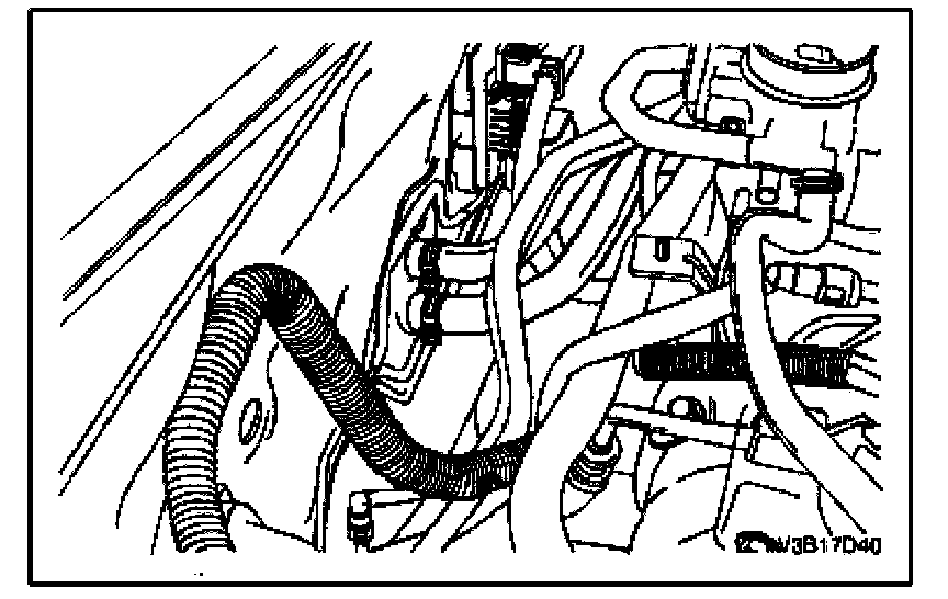 8. Compress the heater hose clamps at the fire wall and slide the clamps toward the engine.