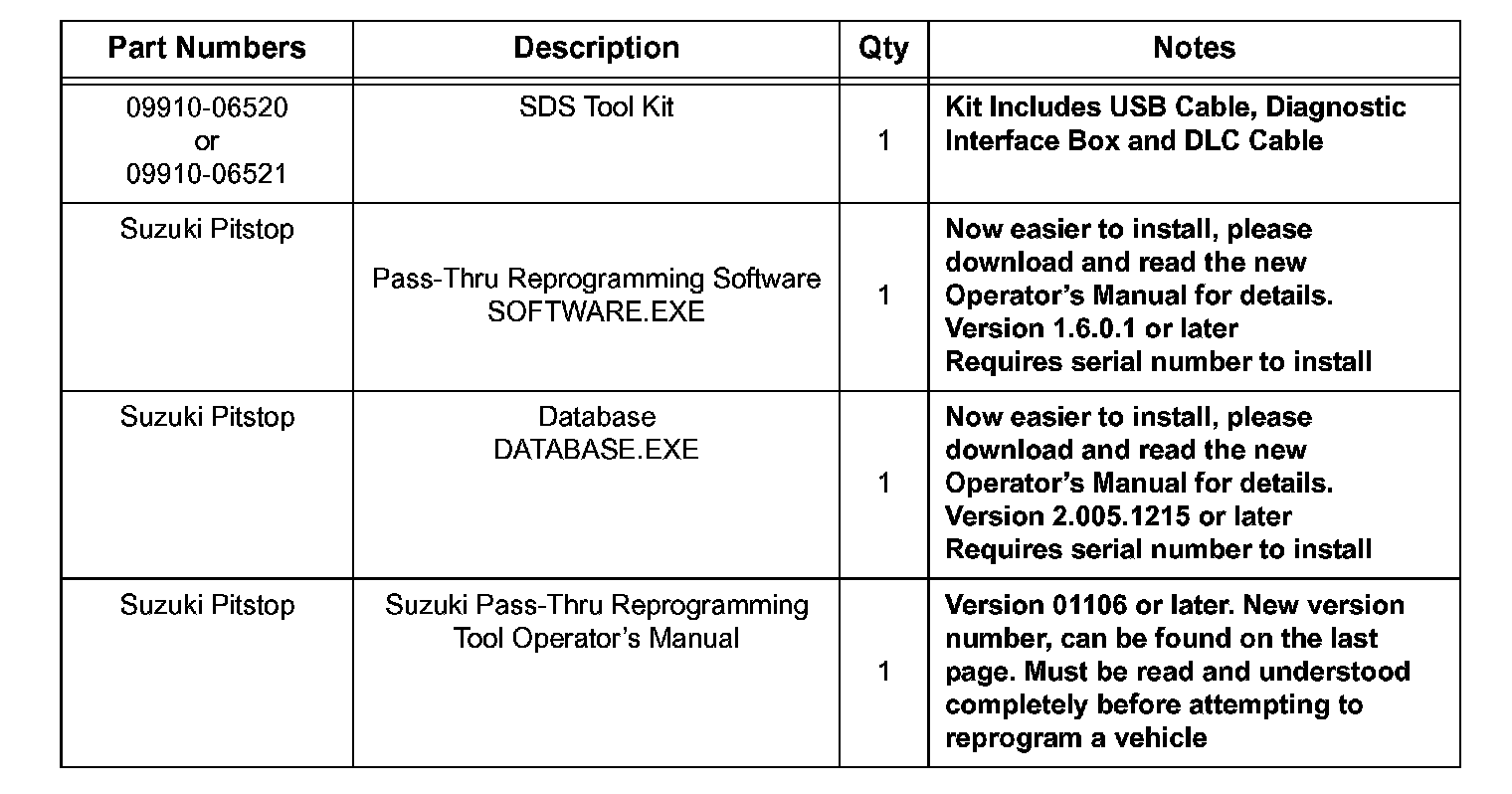 4. Download the Suzuki Pass-Thru Reprogramming Data Base "DATABASE.EXE" onto your PC. Follow the procedure in Section 3.2 of the Operator's Manual to update the Database files. This step is only required to be done once to accommodate all vehicles covered under this TSB.