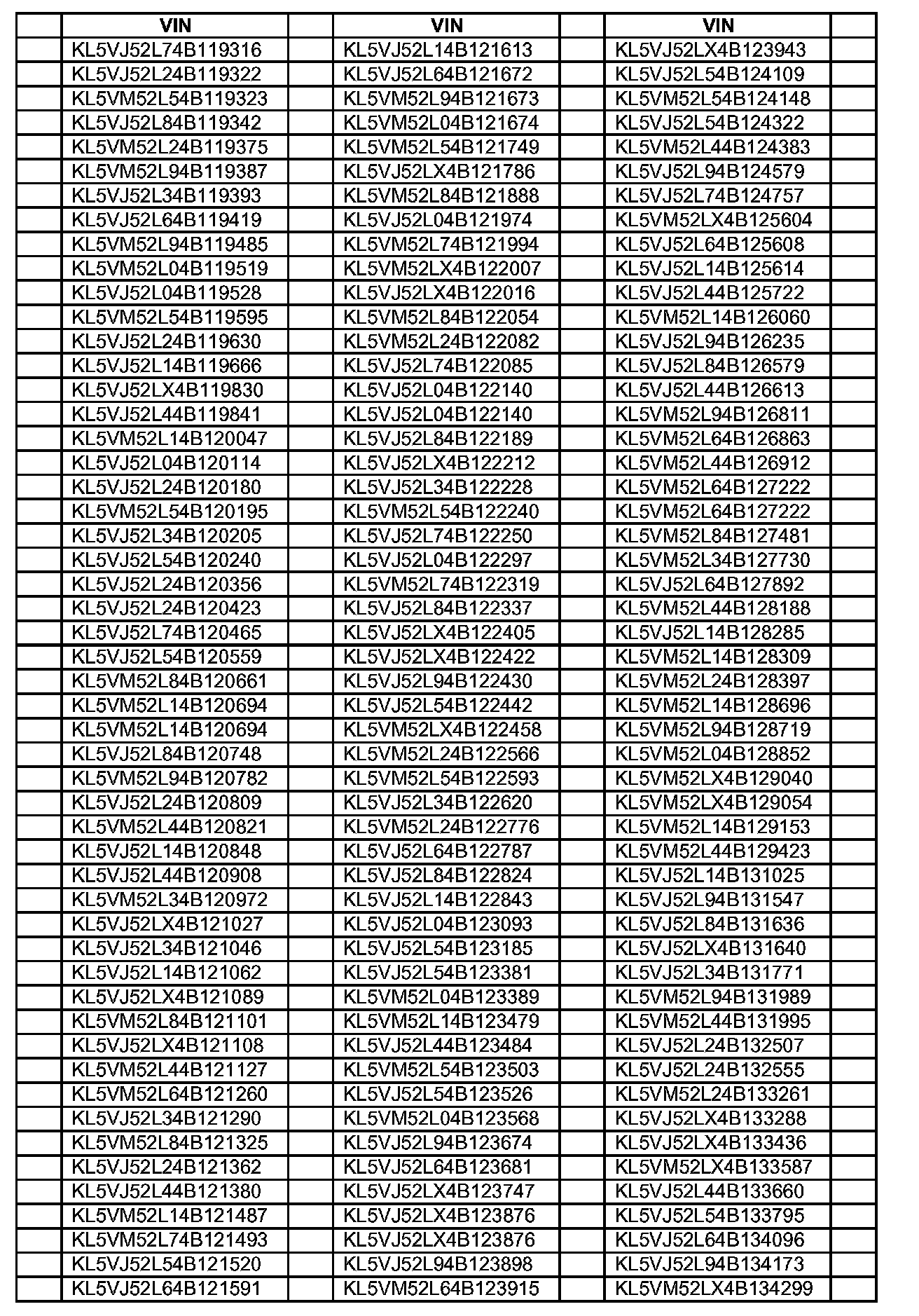 During a past service event which involved replacing one or both Upper Oxygen (02) Sensor(s), an incorrect part (a part designed for another market application) may have been installed. The incorrect Oxygen Sensor(s), which perform the same function as the correct one, was released as a repair part due to a parts catalog error. We have tested the incorrect Oxygen Sensor, and determined that it should not affect performance, or cause damage to the vehicle. If the Malfunction Indicator Light (MIL) illuminates, and the incorrect Oxygen Sensor is found to be the failed part your dealership will perform replacement at no charge for the life of the vehicle. This only applies to vehicles listed on the VIN list. Do not take action unless the 02 sensor(s) is found to be the failed part. ASMC will notify owners of this service action by mail; see the owner letter. If a Verona owner should contact your dealership for assistance, please take the appropriate action to provide the best possible customer service.