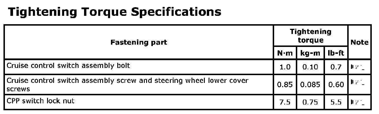 TIGHTENING TORQUE SPECIFICATIONS