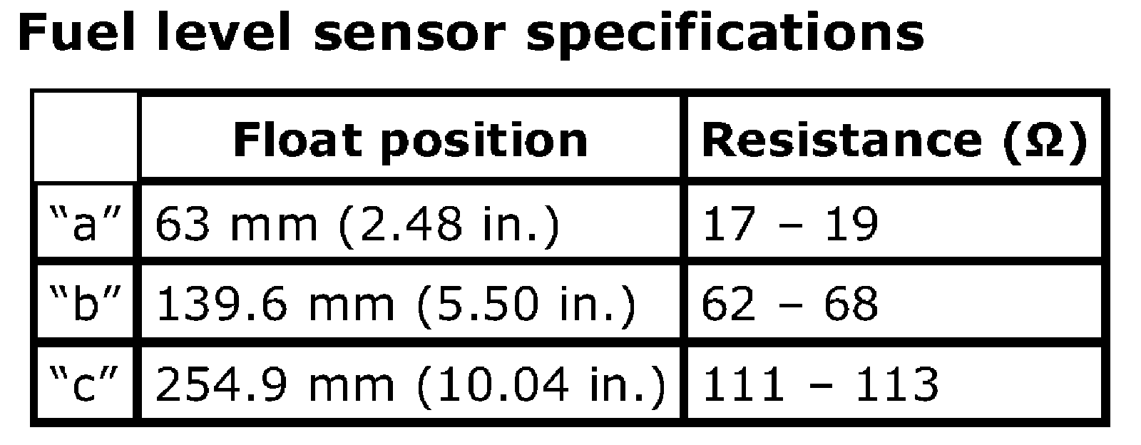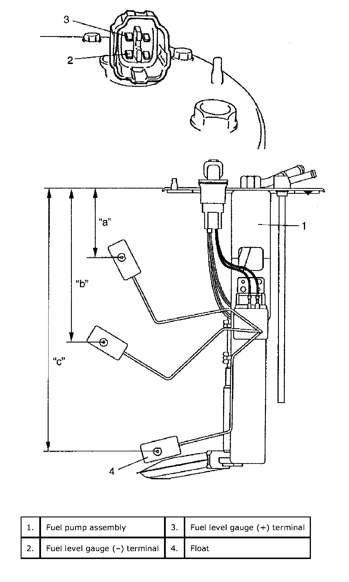 FUEL LEVEL SENSOR (SENDER GAUGE) INSPECTIONRemove fuel pump assembly referring to Fuel Pump Removal and Installation. Use an ohmmeter to confirm that resistance of sender gauge unit changes with change of float position.