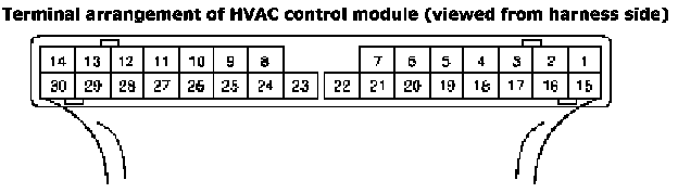 Terminal arrangement of HVAC control module (viewed from harness side)