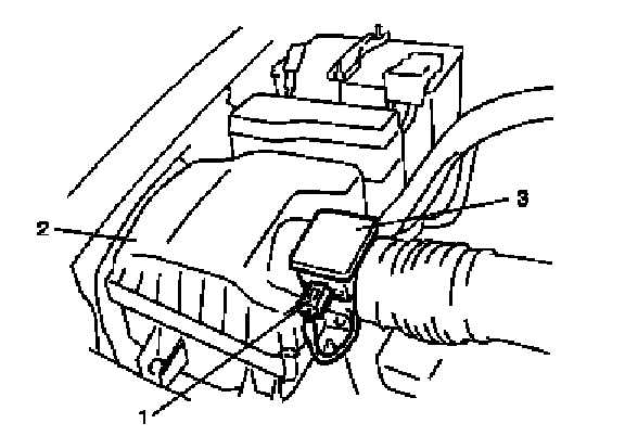 1. Disconnect negative cable (-) at battery and coupler (1) from MAF sensor (3)