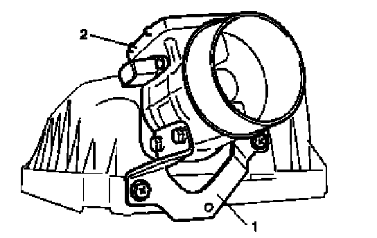 3. Remove bracket (1) and MAF sensor (2) from air cleaner case.