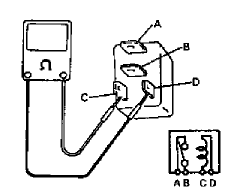 4. Check that there is continuity between terminals A and B when battery is connected to terminals C and D .