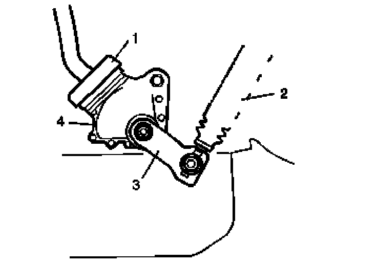 6. Connect select cable (2) to manual select lever (3). Tighten select cable end nut to specified torque.
