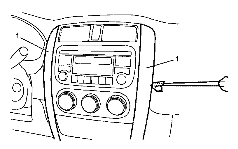 2. Gently remove instrument panel center garnish trims (1) from instrument panel.