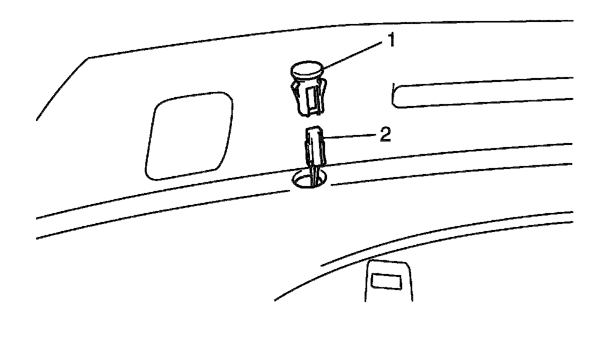 2. Remove sunload sensor (1) from instrument panel by depressing tab and pushing sensor upward from underneath.