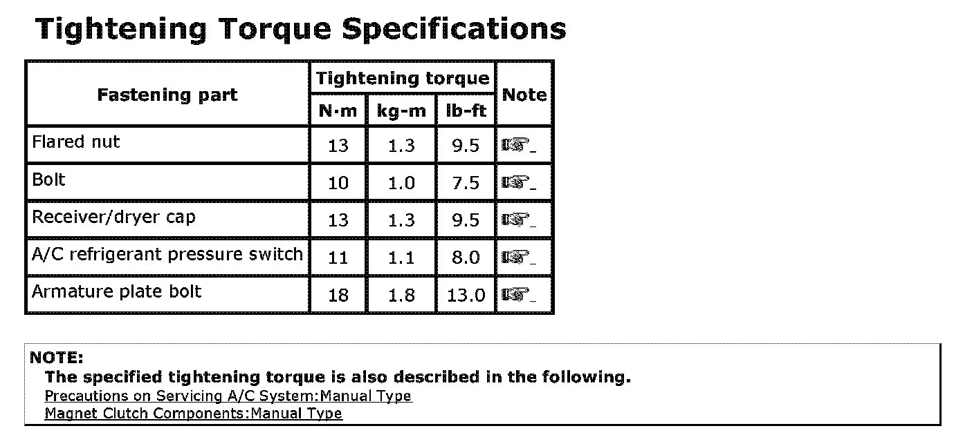 Reference: For the tightening torque of fastener not specified , refer to Fasteners Information.
