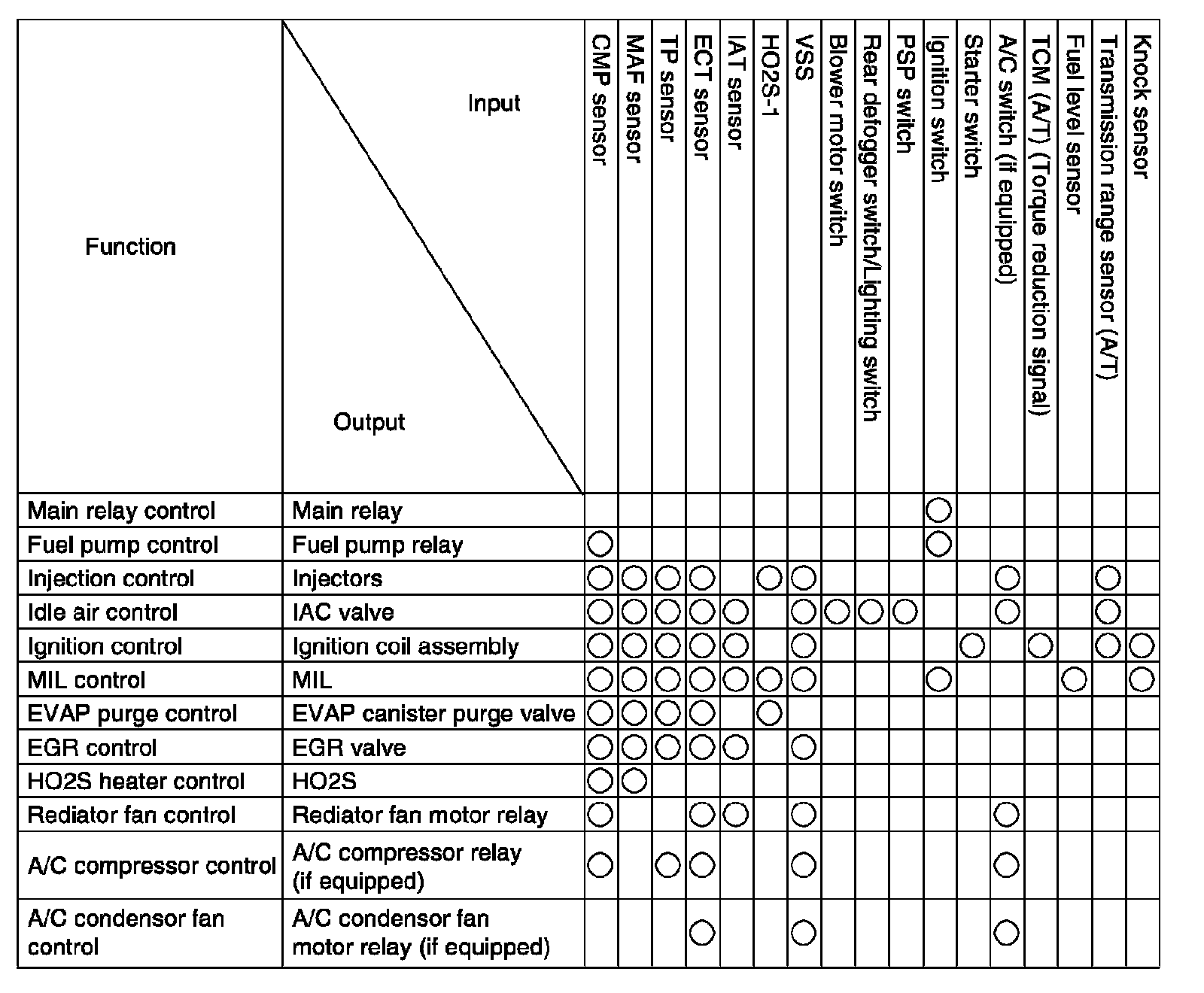 Engine and Emission Control Input / Output Table