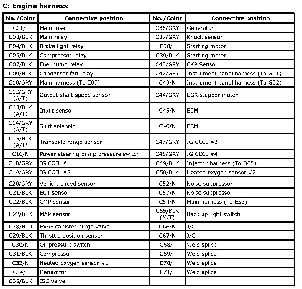 C Engine Harness Index:
