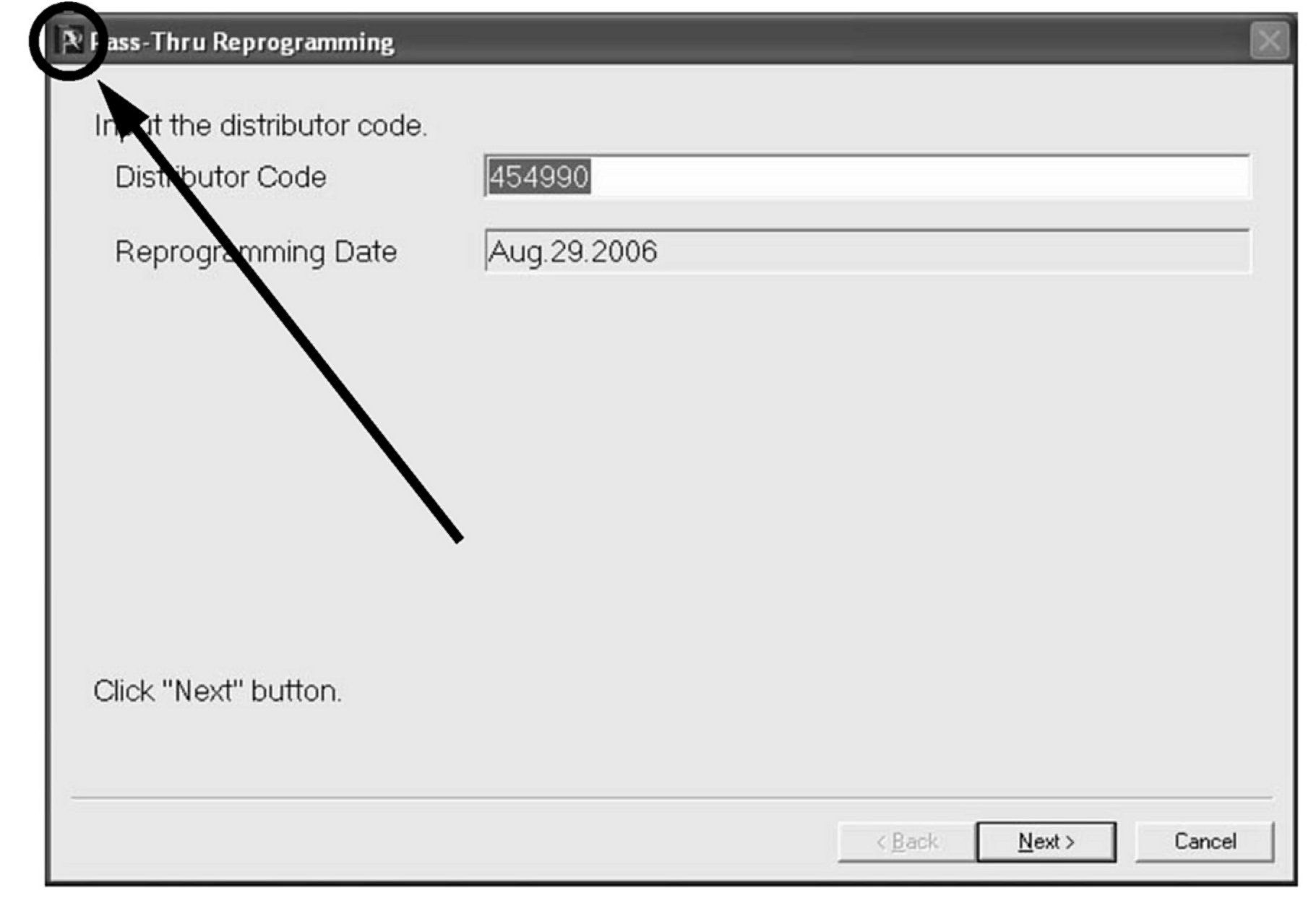 1. To verify the current Pass-Thru Reprogramming software and database are installed in your PC. Open the Suzuki Pass-Thru Reprogramming Tool as if to reprogram a vehicle. Then left click the "P" icon on the top left corner of the screen.