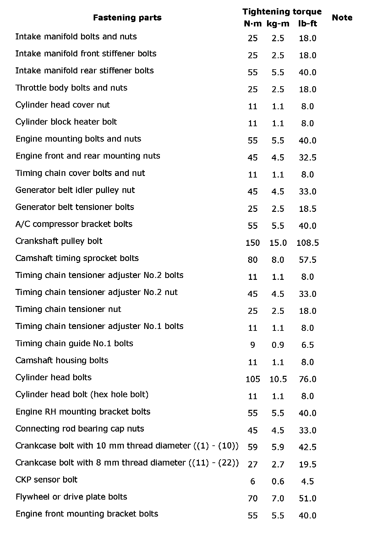 Torque Specifications