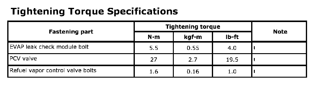 Reference: For the tightening torque of fastener not specified, refer to Fasteners Information.