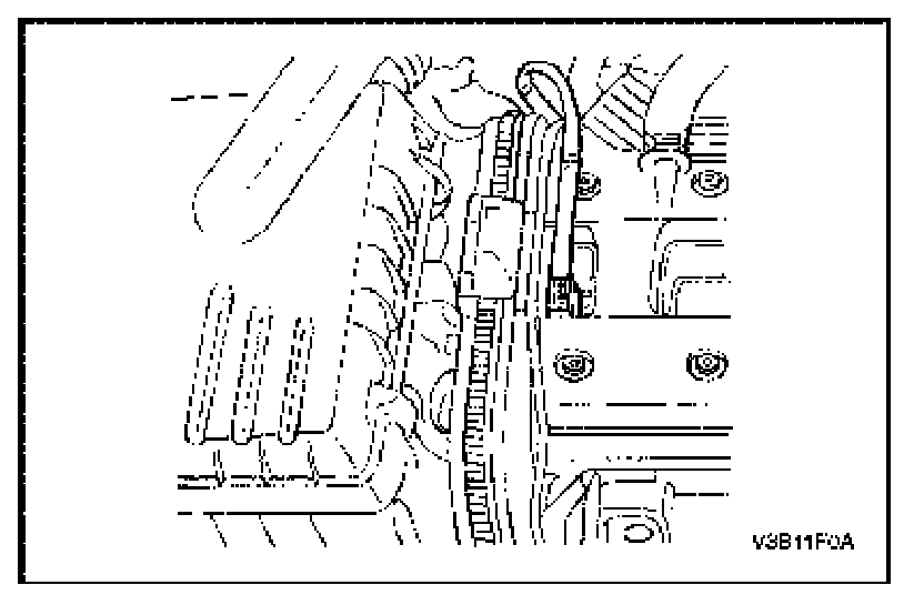 2. Install the timing belt front cover, the crankshaft pulley, the accessory drive belt, and the air filter. Refer to Timing Belt Removal and Installation.