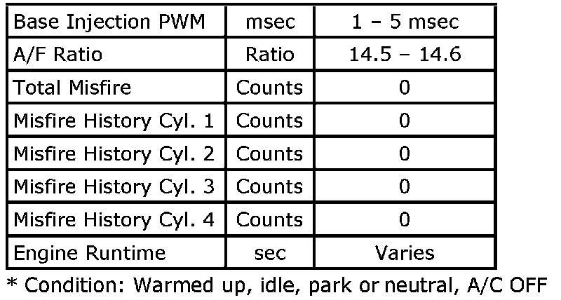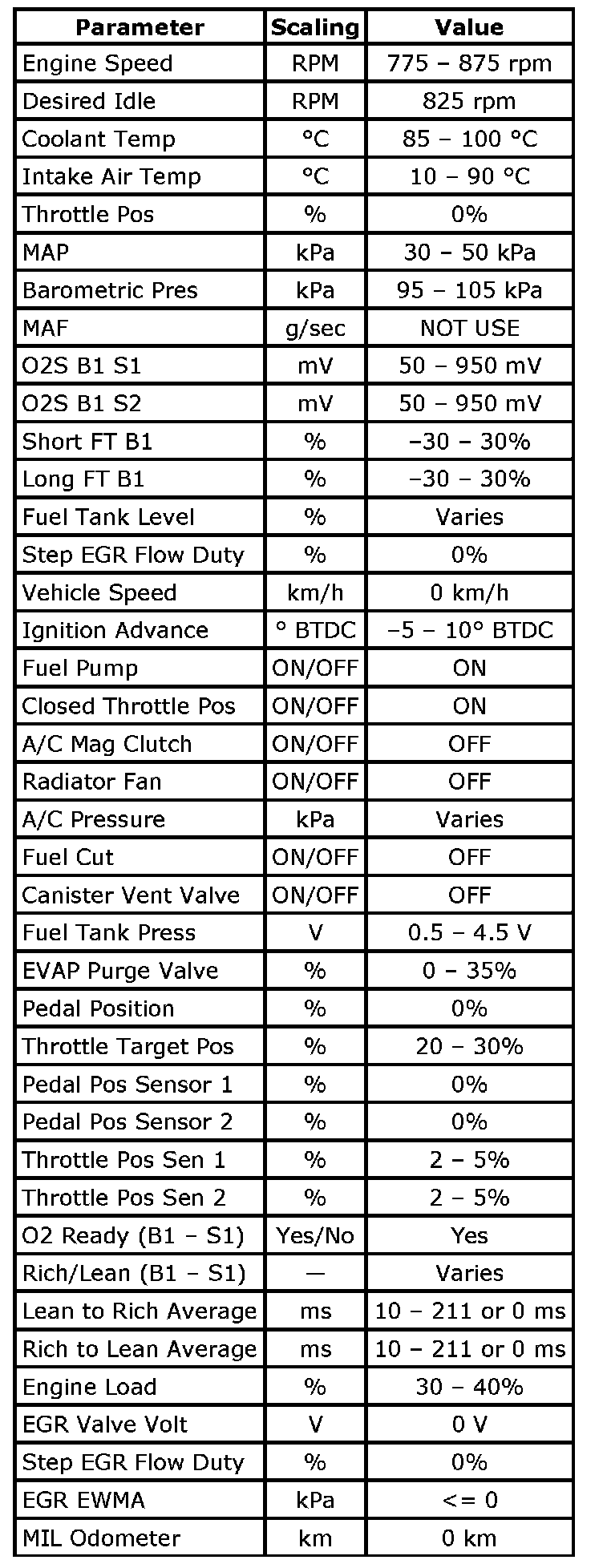 Engine Data Display Tables