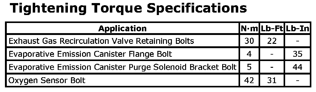 Tightening Torque Specifications: