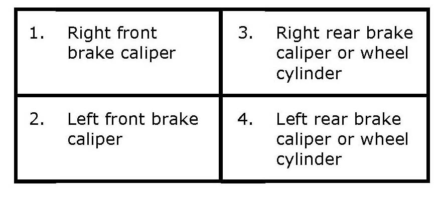 NOTE: Perform bleeding operation starting with rear brake caliper or wheel cylinder farthest from master cylinder and then at front caliper of the same brake line. Do the same on the other brake line.