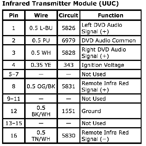 Infrared Transmitter Module (UUC)Connector Part Information