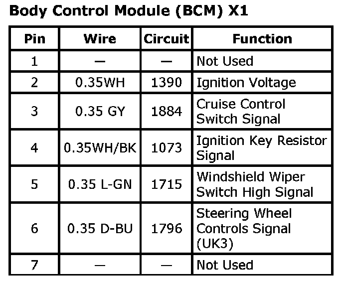 Body Control Module (BCM) X1 (Part 2):
