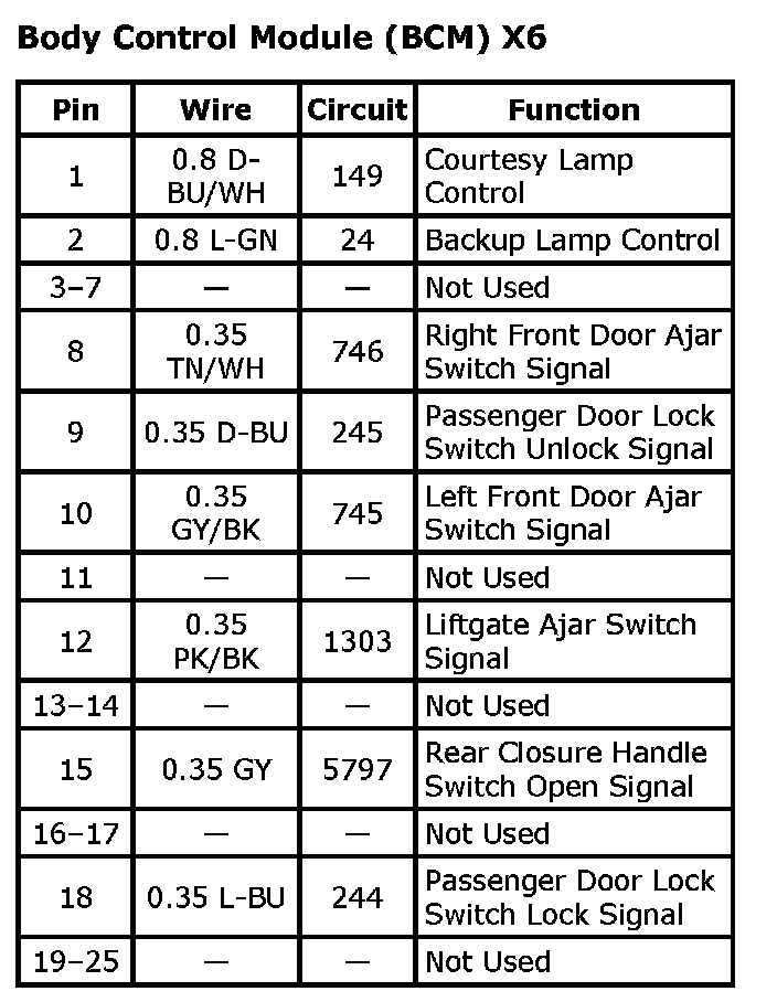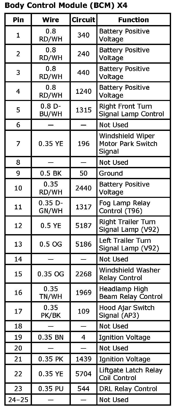 Body Control Module (BCM) X4 (Part 2):