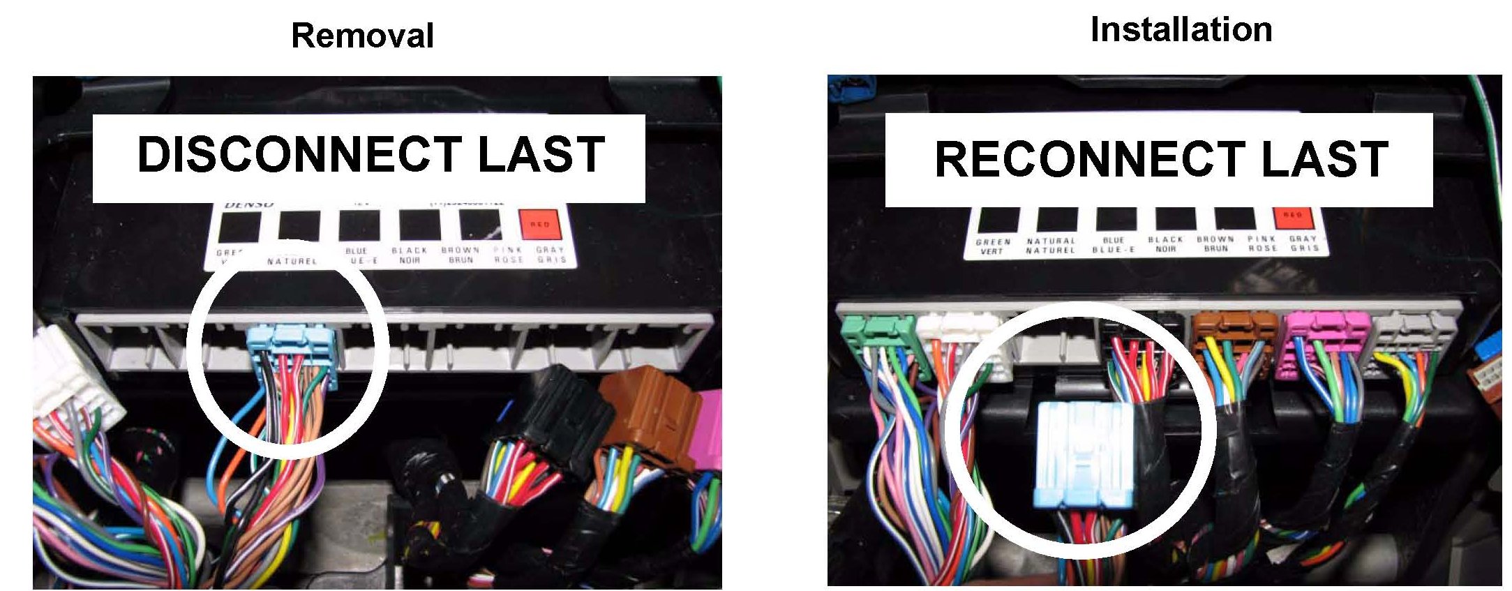 If the BCM connectors are not installed in the correct order damage to the BCM may occur. Other systems controlled by the BCM may also become inoperative or intermittent.