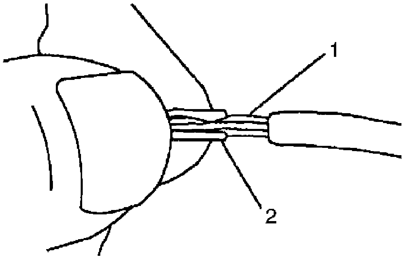 7. Center the splice clip (2) over the stripped wires (1) and hold the clip in place.