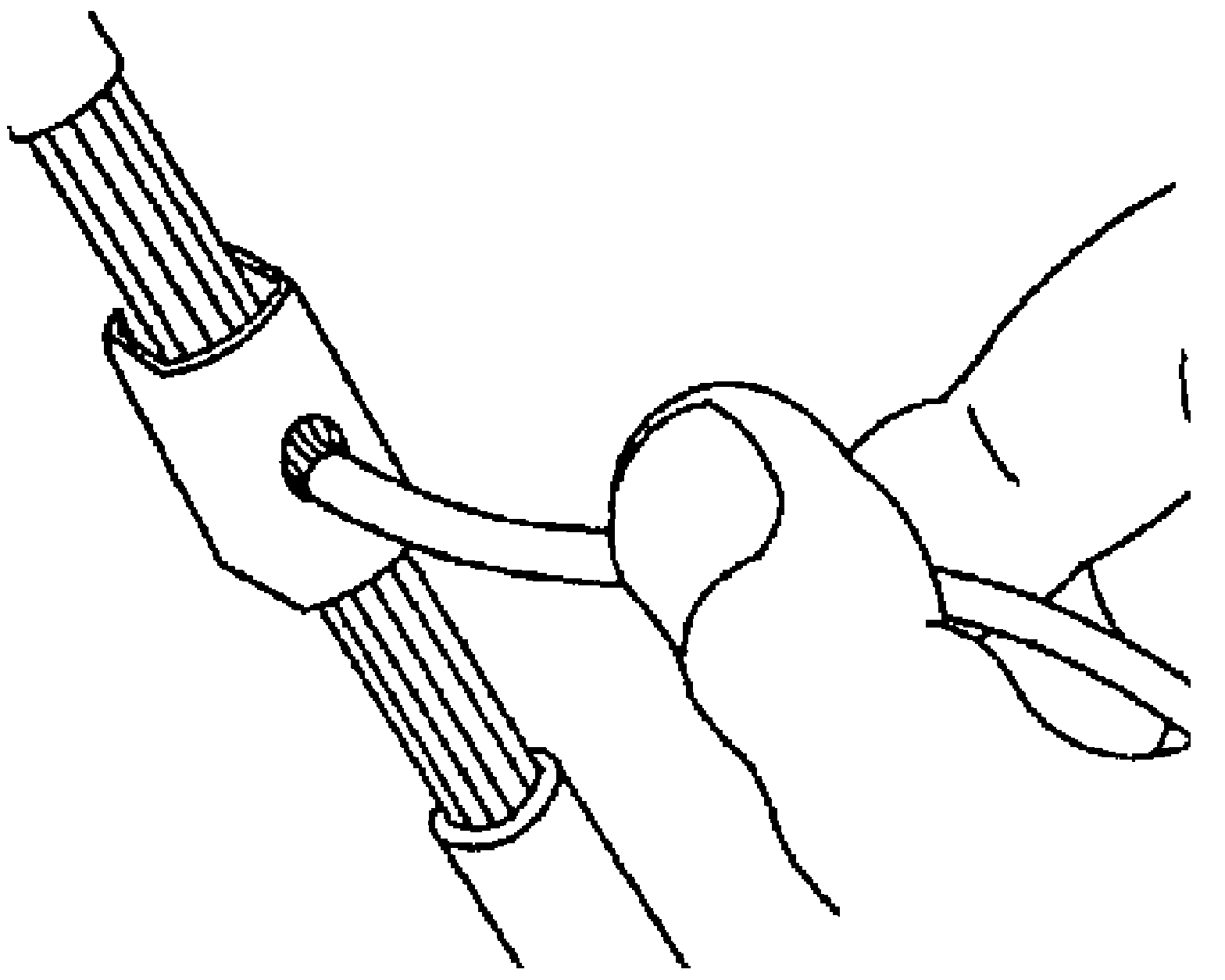 6. Overlap the 2 stripped wire ends and hold them between thumb and forefinger.
