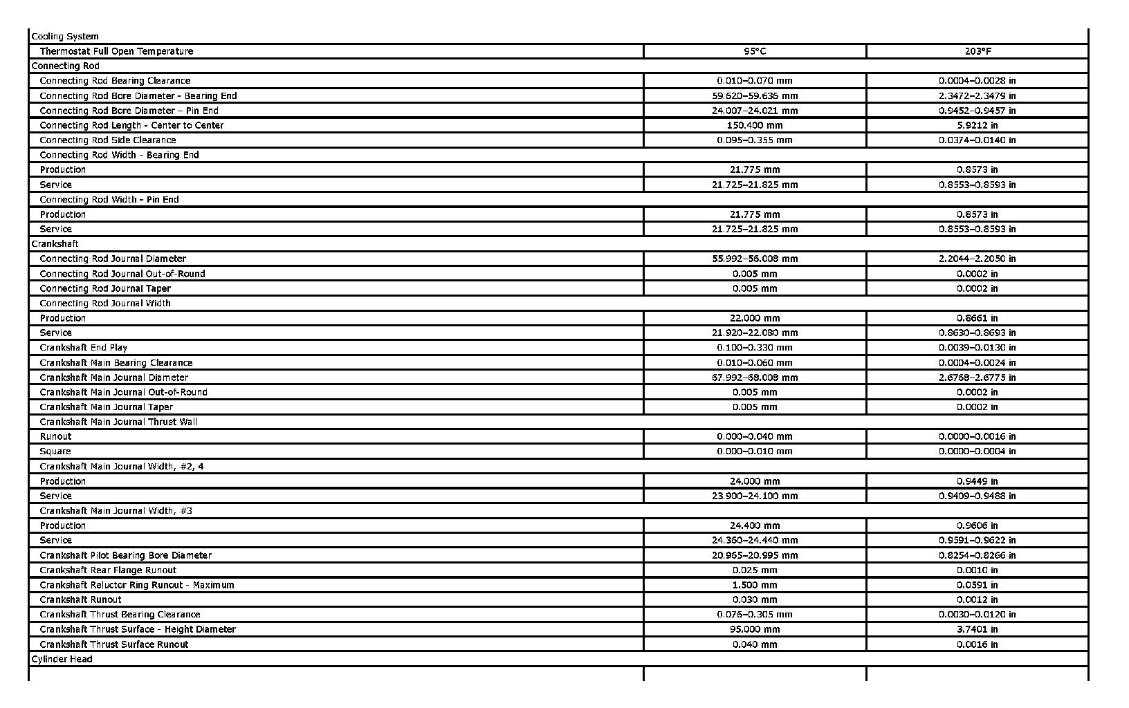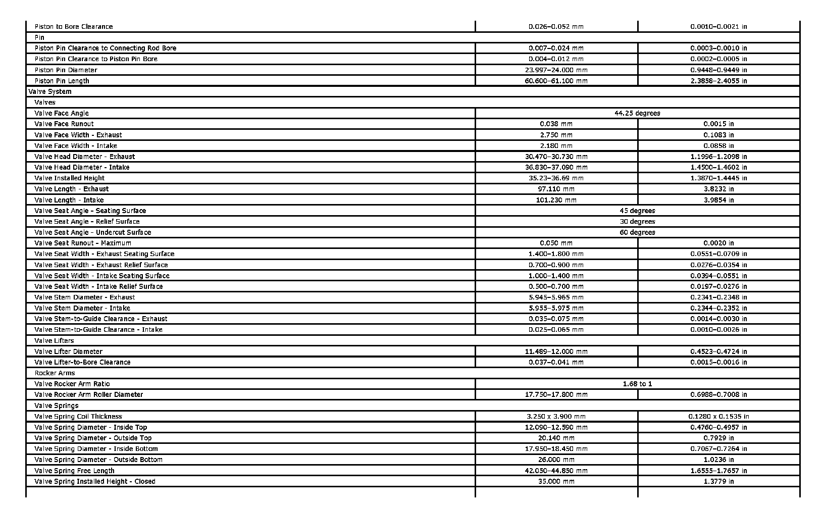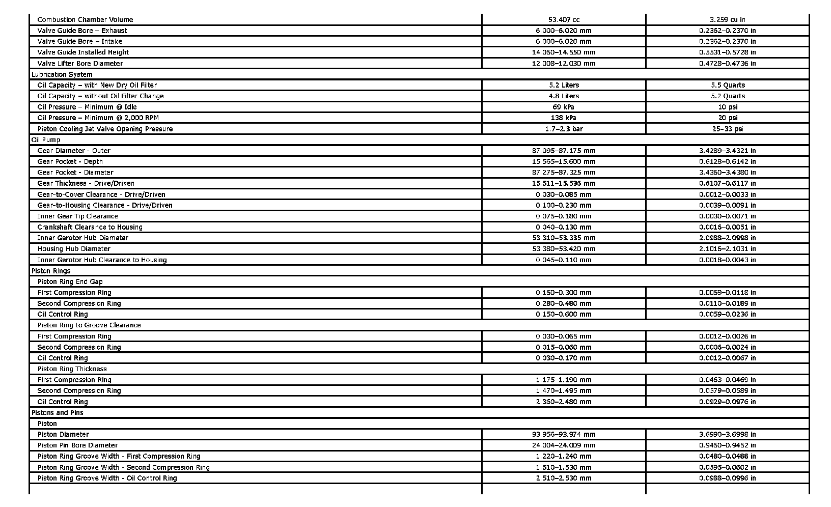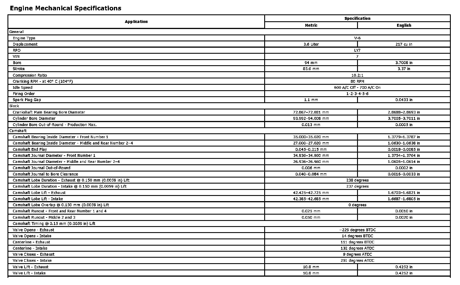 Engine Mechanical Specifications