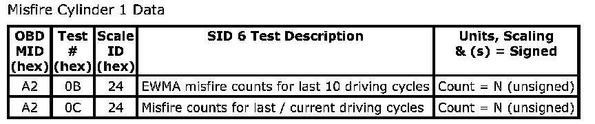 Misfire Cylinder 1 Data: