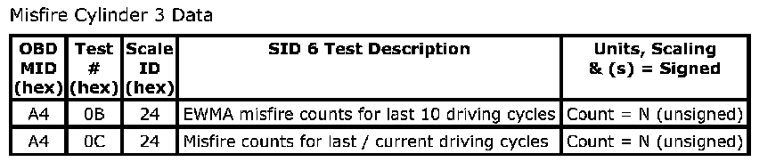 Misfire Cylinder 3 Data: