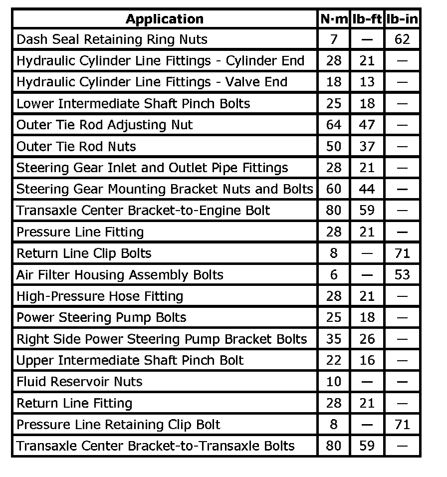 Tightening Torque Specifications: