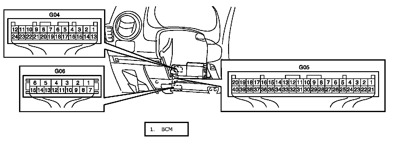 Connector Layout Diagram Of BCM Connectors (Viewed From Harness Side):