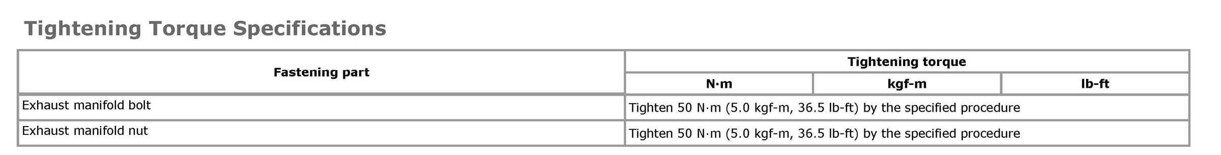Tightening Torque SpecificationsNOTE: The specified tightening torque is also described in the following. Exhaust System Components