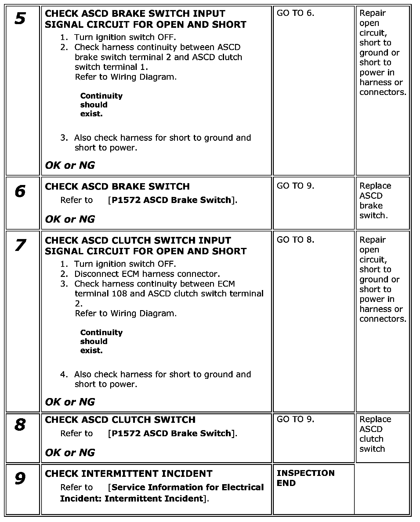 If NG, adjust ASCD brake switch installation and perform step 3 again.