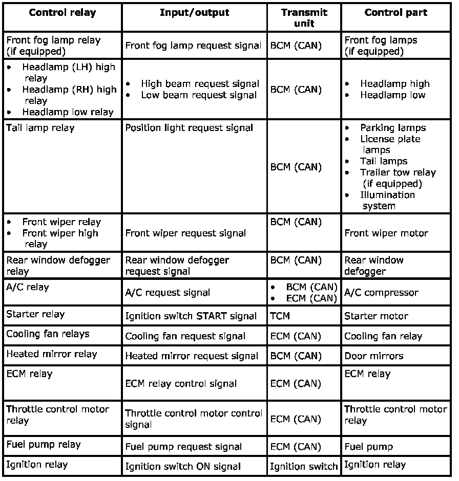 Home >> Suzuki >> 2009 >> Equator 2WD L4-2.5L >> Repair and Diagnosis >> Power and Ground Distribution >> Power Distribution Module >> Description and Operation >> Relay Control System: System Description