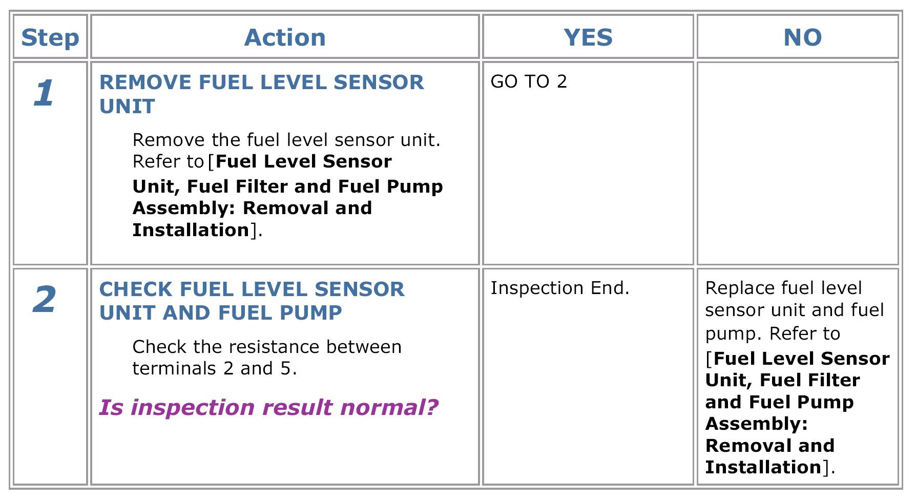 Fuel Level Sensor: Testing and Inspection