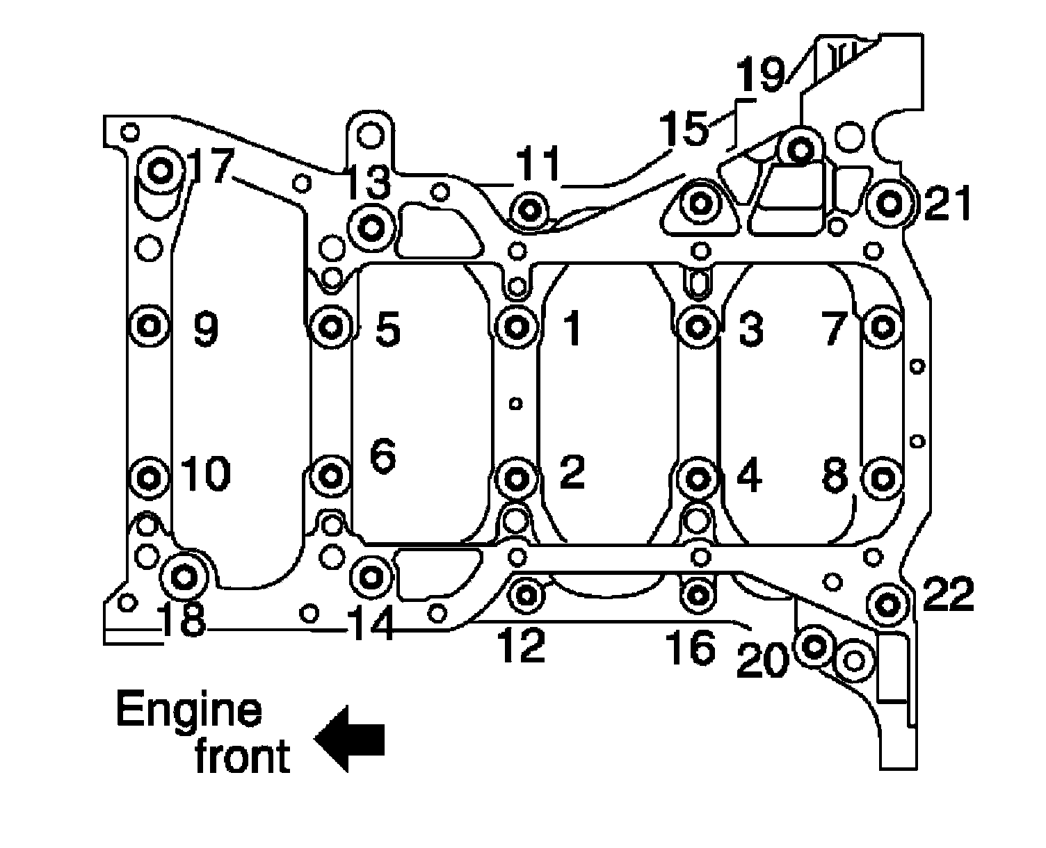 Step 1 (bolts 11 -22): 25.1 N-m (2.6 kg-m, 19 ft-lb)