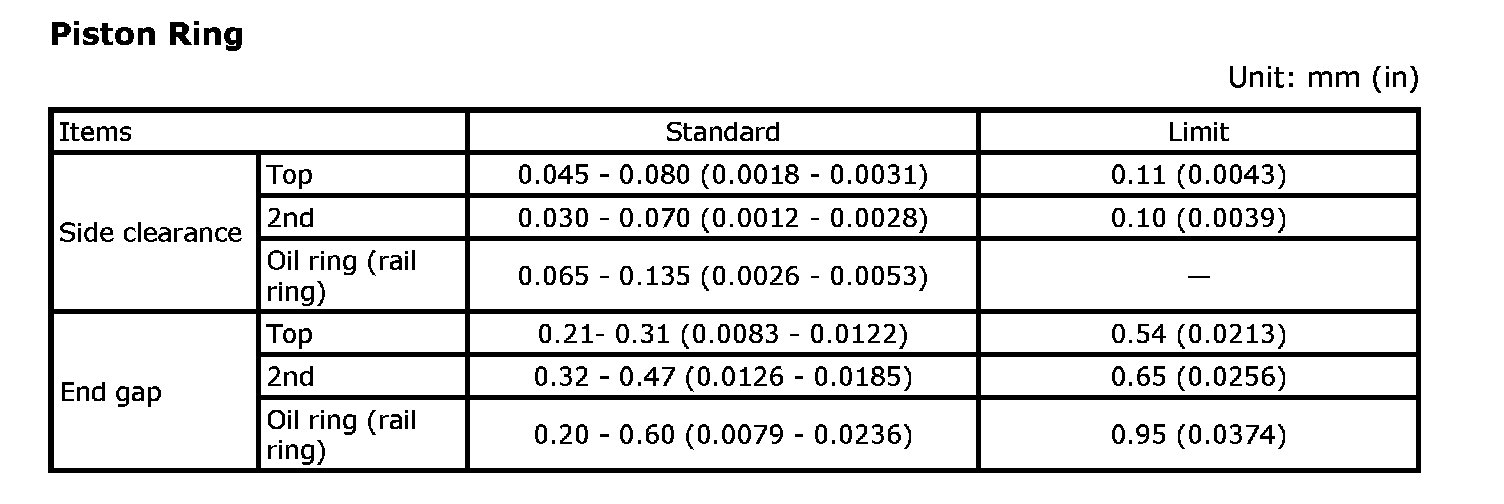 Difference in inner diameter between cylinders - Standard - Less than 0.03mm (0.0012 in)