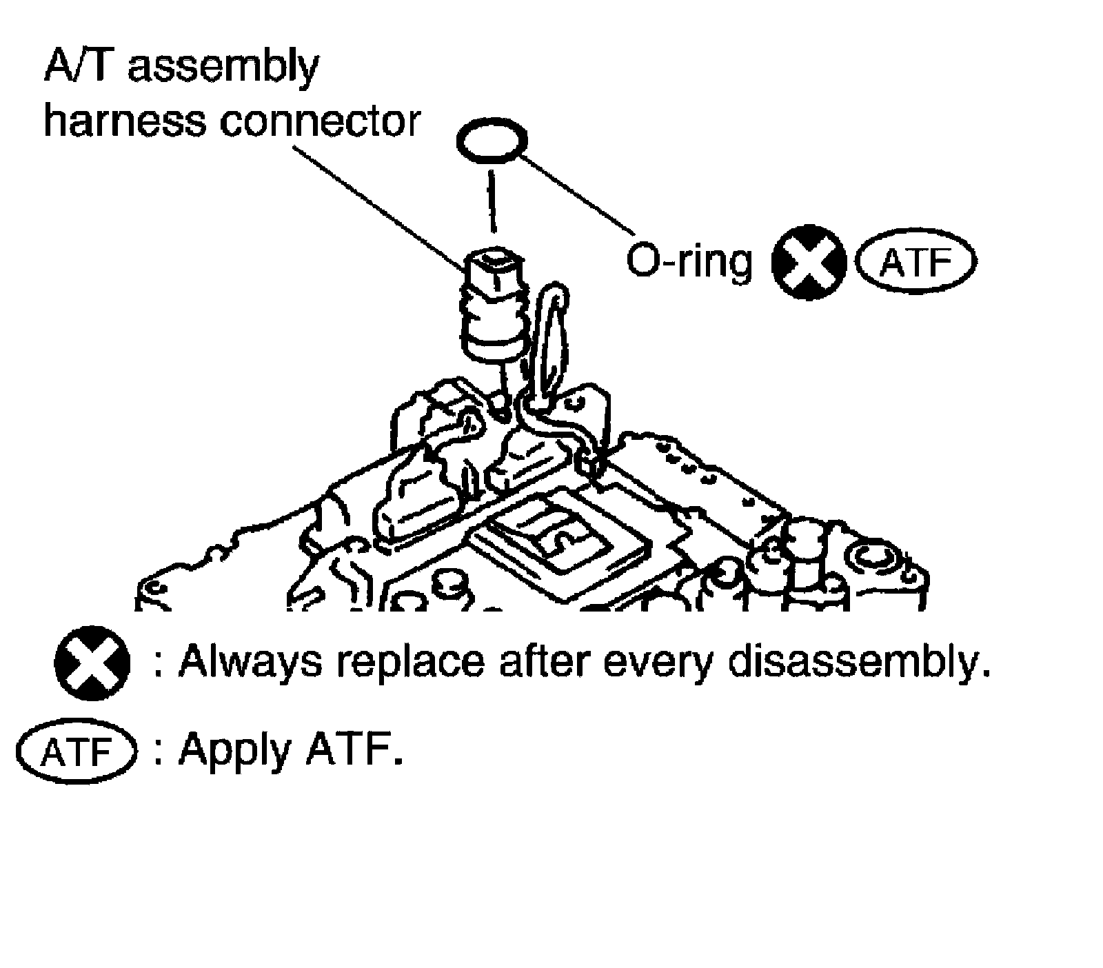 7) Disconnect A/T fluid temperature sensor 2 connector (A).