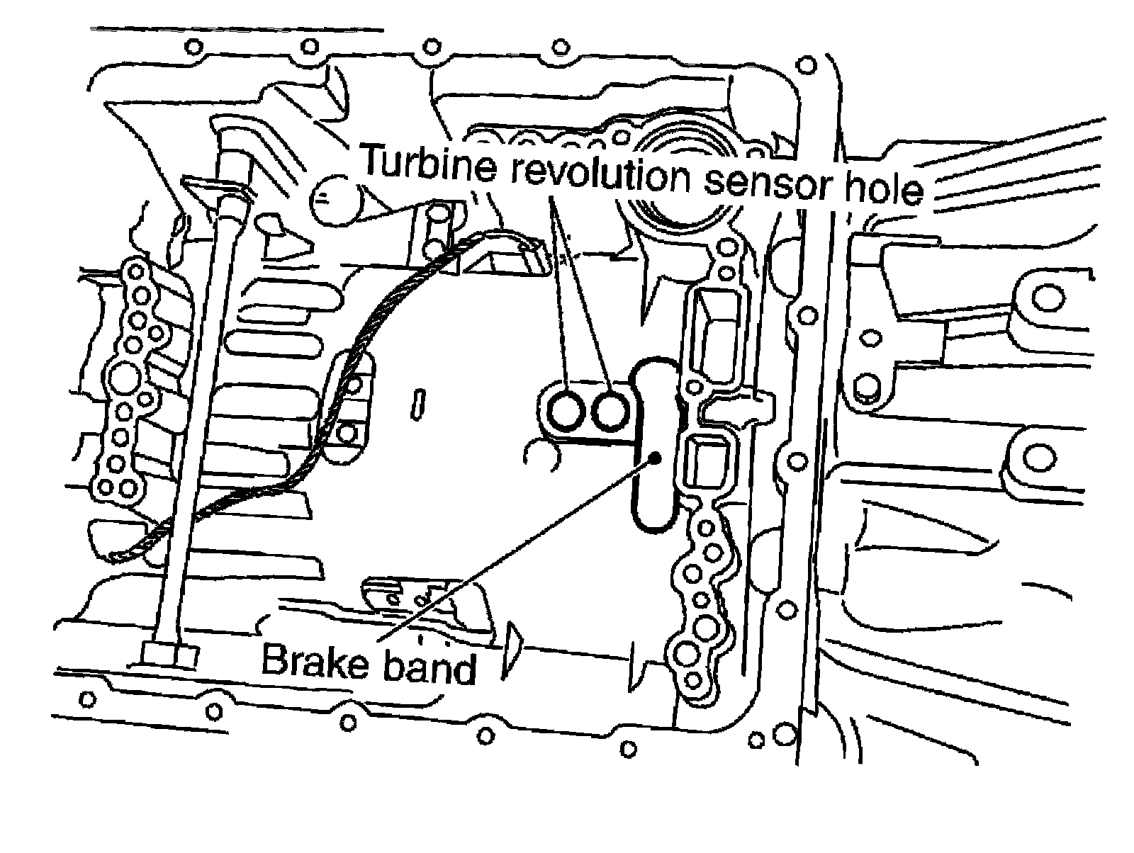 ^ Hang down revolution sensor harness toward outside so as not to disturb installation of control valve with TCM.