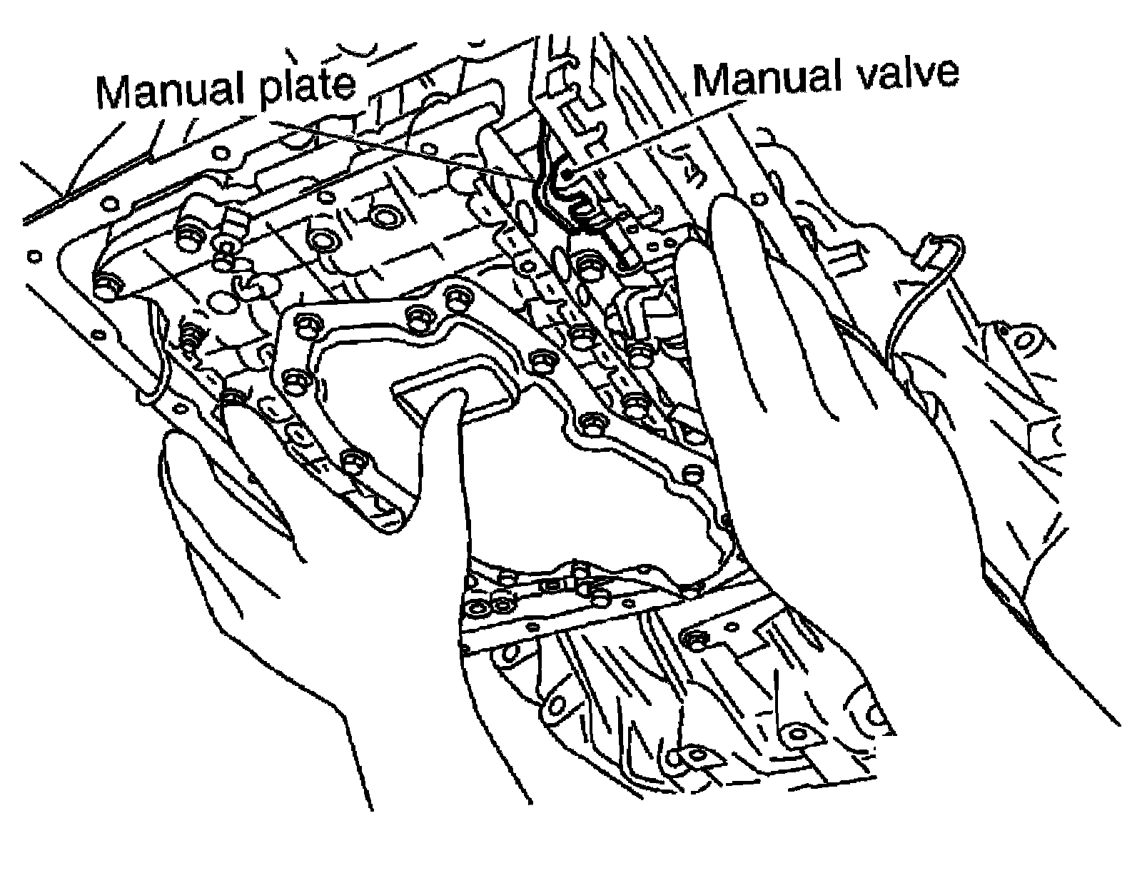 ^ Assemble it so that manual valve cutout is engaged with manual plate projection.