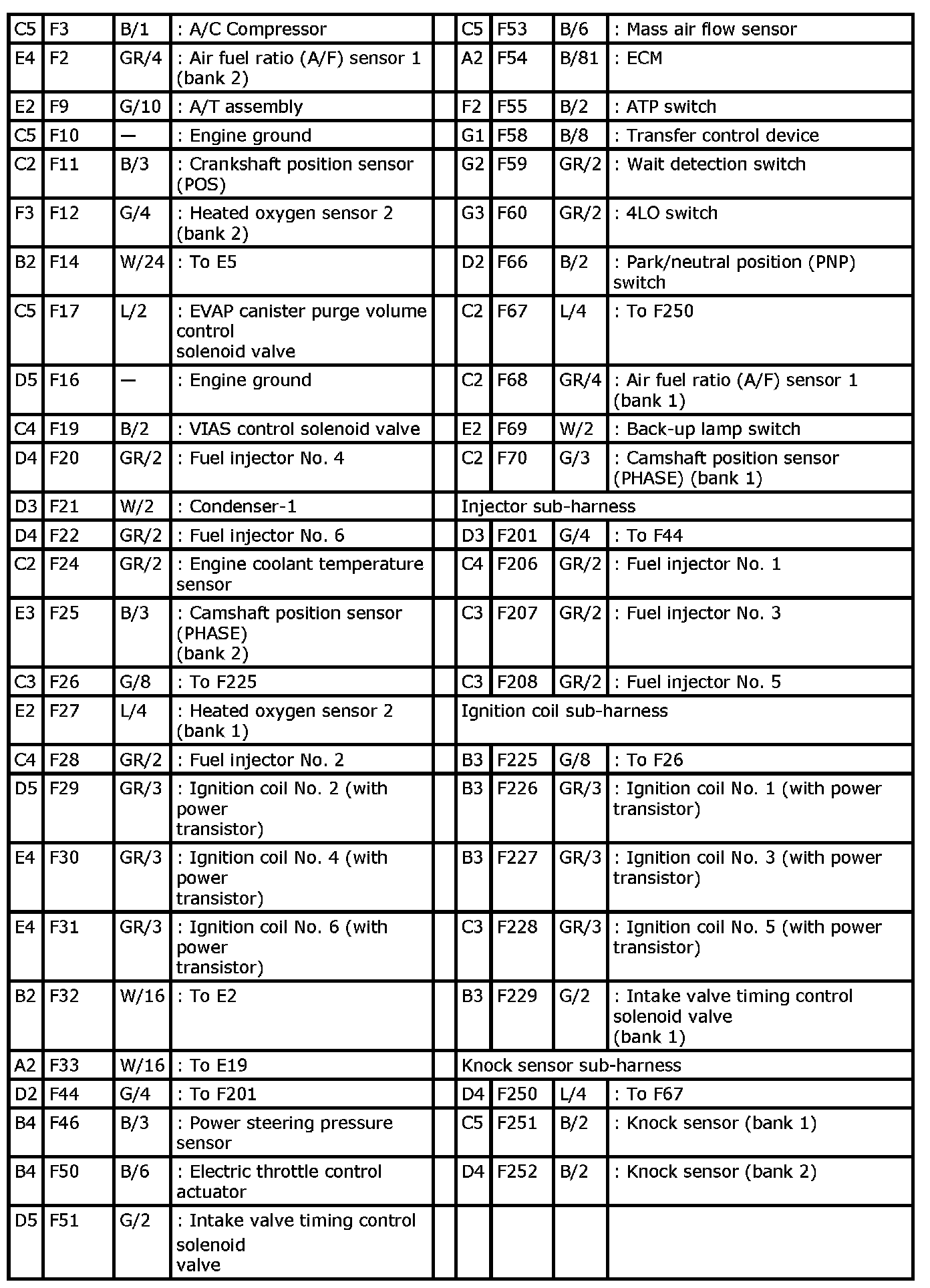 ENGINE CONTROL HARNESS (VQ40DE MODELS) INDEX