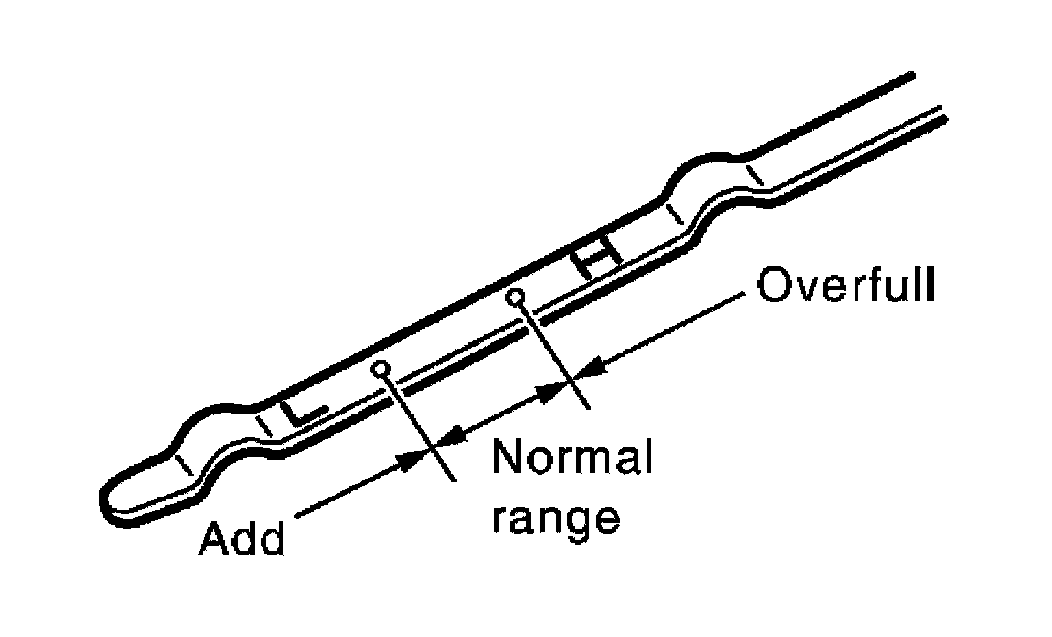 ^ Check that the oil level is within the low (L) and high (H) range as indicated on the dipstick.