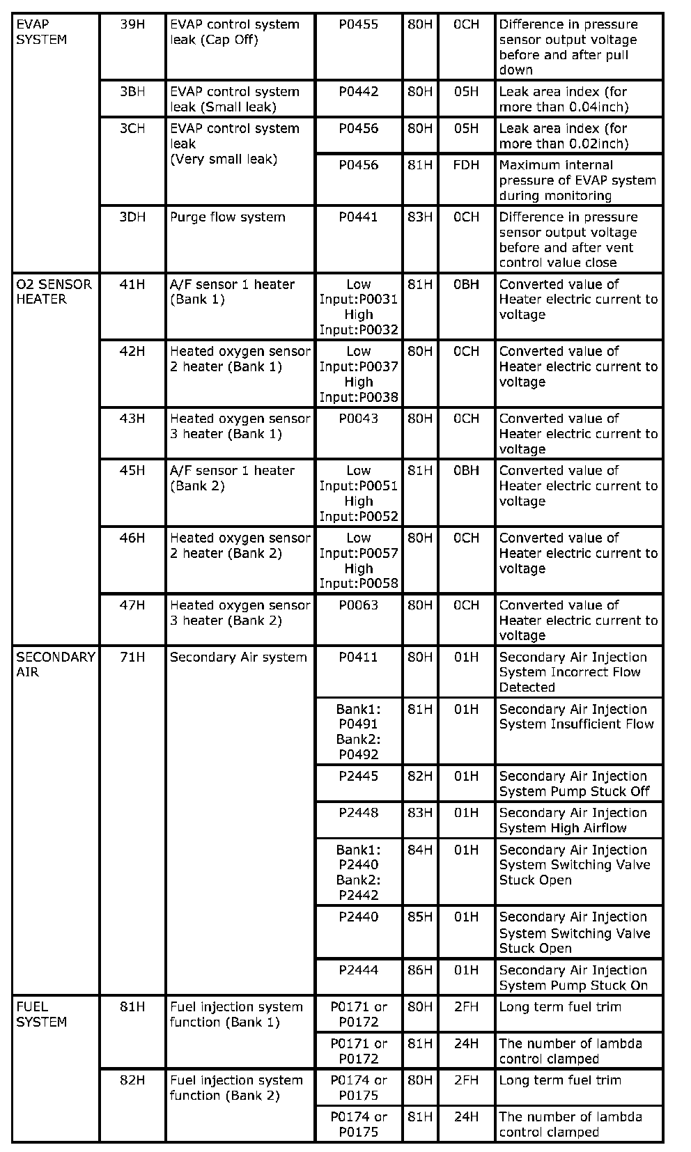 These data (test value and test limit) are specified by On Board Monitor ID(OBDMID), Test ID (TID), Unit and Scaling ID and can be displayed on the GST screen.